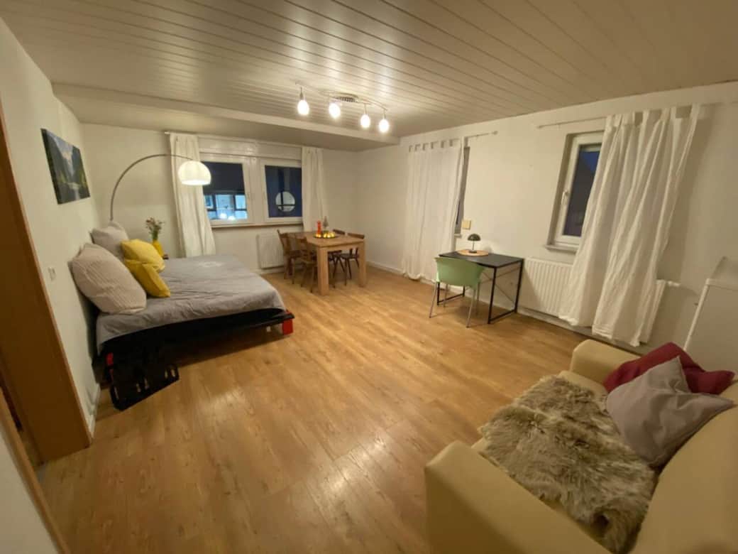 Die geschmackvoll eingerichtete Wohnung mit 75 m2 im Ortskern von Großdeinbach ist ideal für alle, die eine günstige und gemütliche Unterkunft suchen. Im Umkreis von 200 m befinden sich ein Bäcker, die Bank und der schöne Dorfladen. Großdeinbach liegt landschaftlich sehr reizvoll auf der Anhöhe mit Blick auf die Kaiserberge. Nach Schwäbisch Gmünd sind es 7 km, nach Stuttgart 55 km. Nur wenige Schritte vom Haus entfernt ist die Bushaltestelle mit Anbindung nach Schwäbisch Gmünd und Mutlangen.
